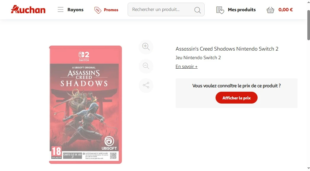 На странице французского магазина Auchan появился новый товар — игра Assassin’s Creed Shadows для Nintendo Switch 2. Ранее тайтл вышел на всех актуальных платформах, кроме японской консоли.