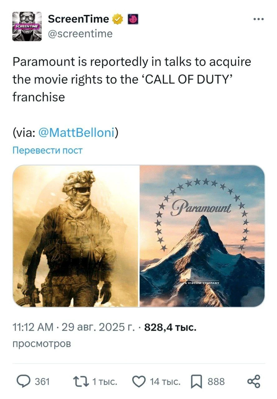 Paramount ведёт переговоры с Activision Blizzard, которой принадлежат права на Call of Duty. Кинокомпания хочет экранизировать знаменитый шутер, рассказал журналист Мэттью Беллони из американского издания Puck News. Подробностей пока нет.