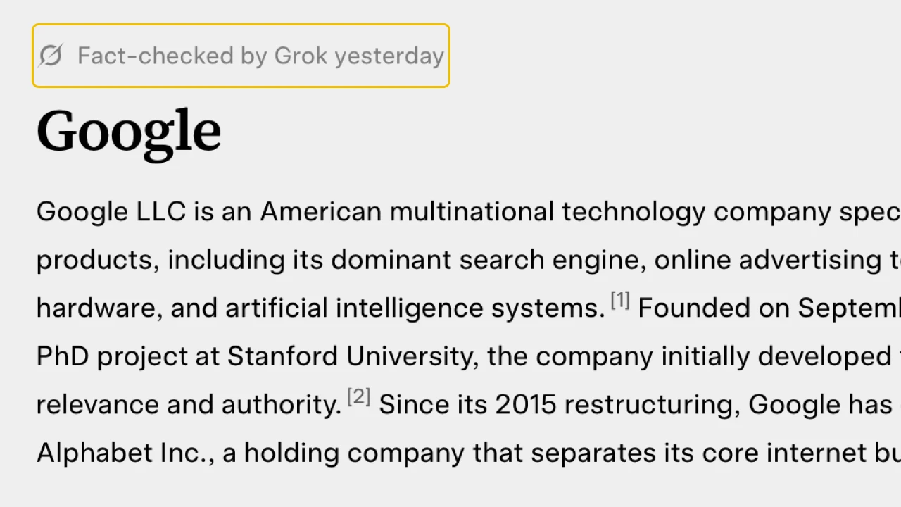 Онлайн-энциклопедия от миллиардера не только выдаёт, но и проверяет факты при помощи языковой модели Grok. В статьях нет видео и картинок, зато содержатся ссылки на источники. Маск презентовал новинку как мощного конкурента «Википедии».